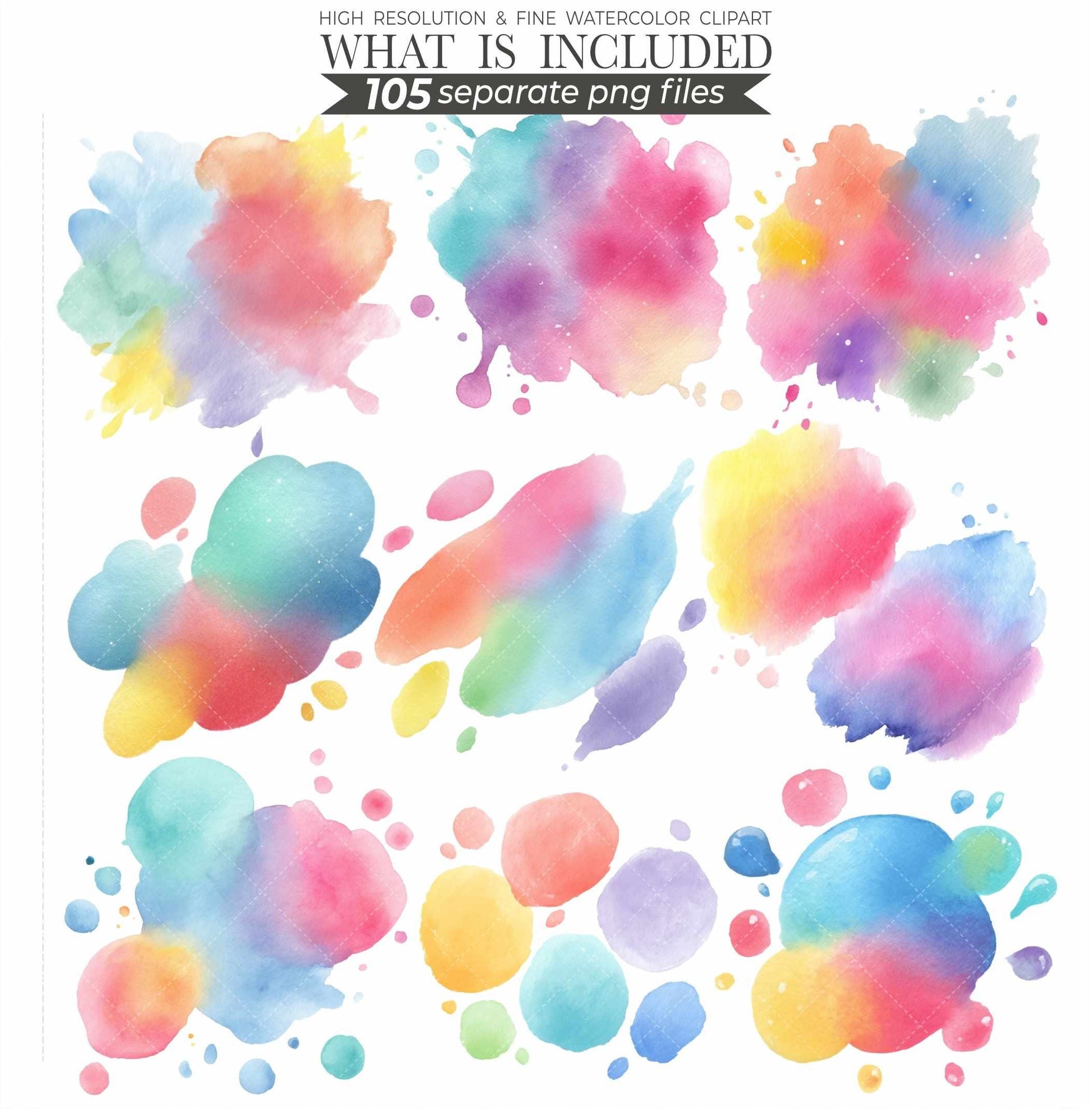 105 Cute Pastel Watercolor Splash Clipart: Abstract PNG (Commercial Use)
