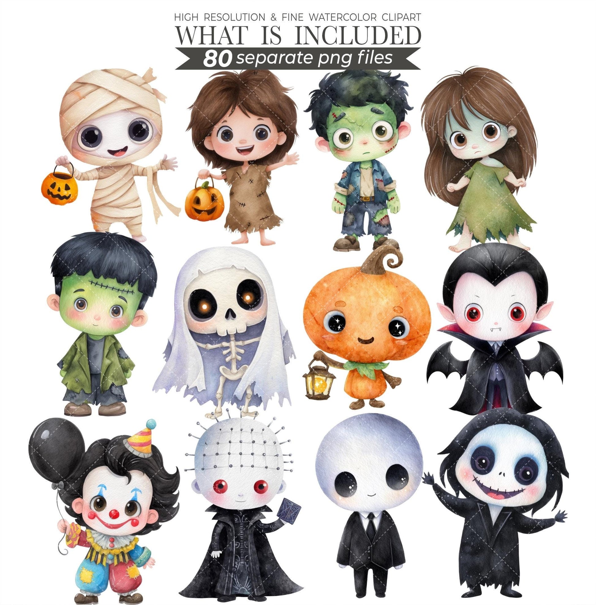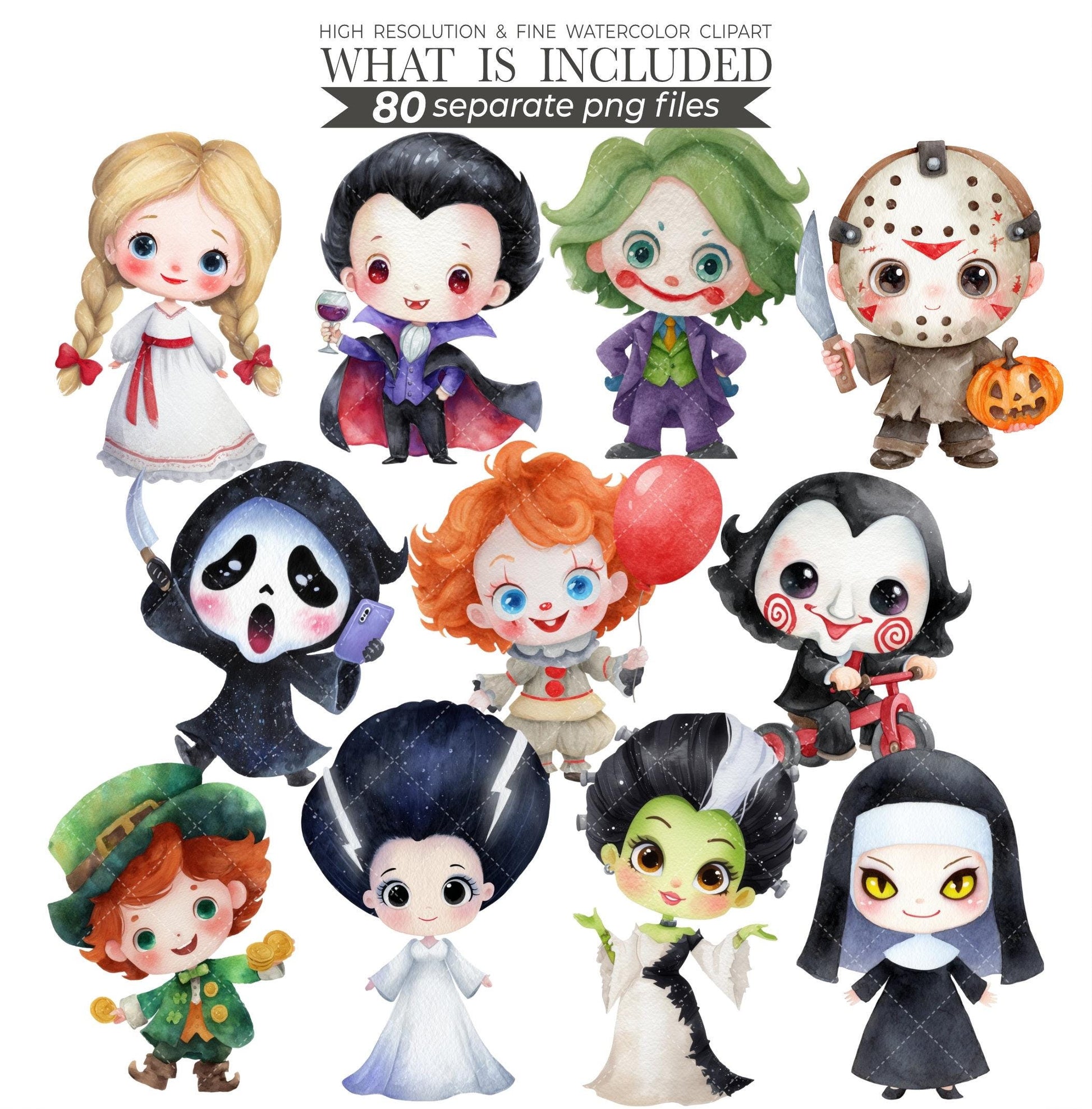 80 Chibi Horror Clipart PNG: Creepy Cute Villains, Dark Style, 300 DPI (Digital Download)
