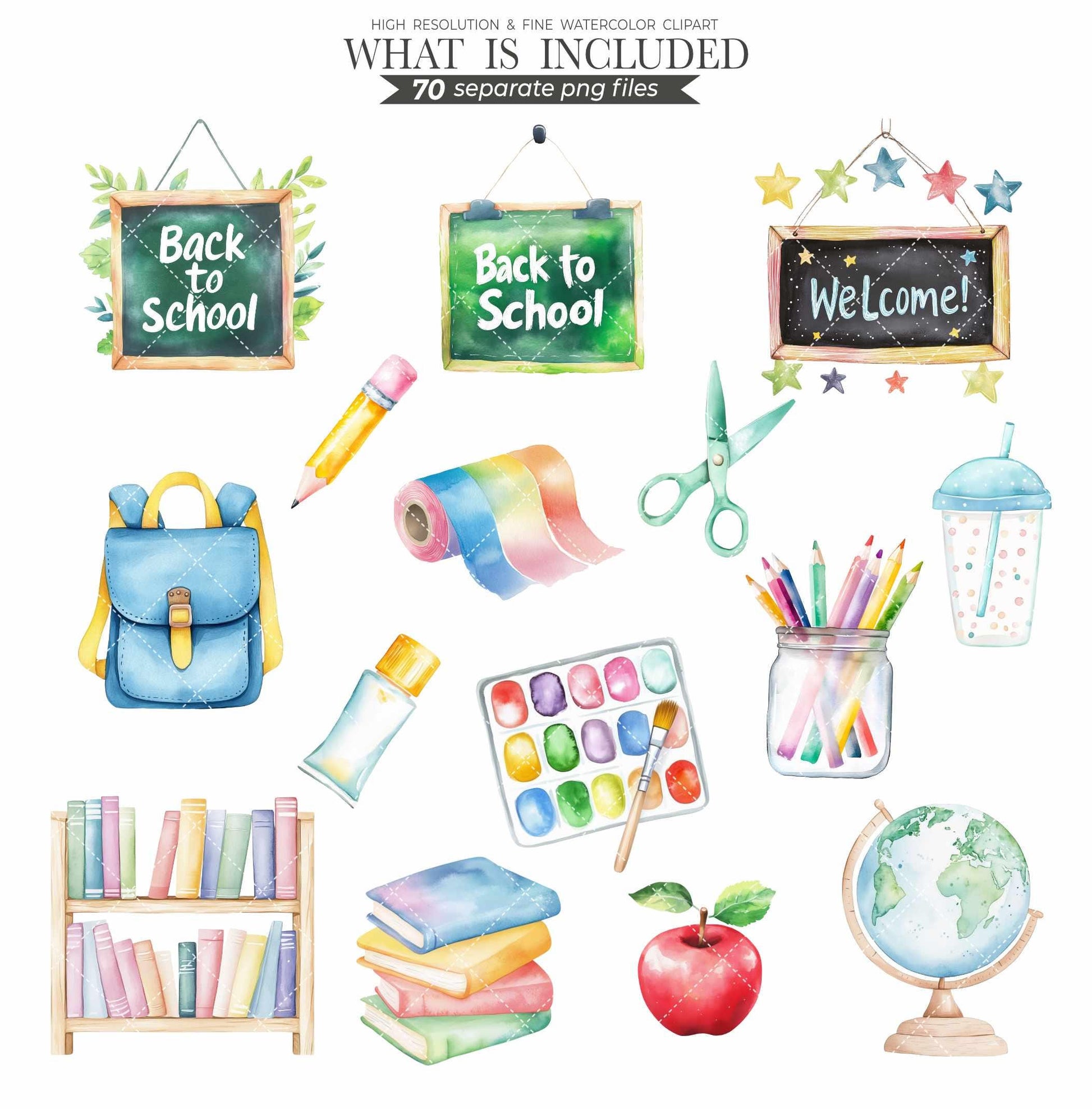 🎒 Bring a Touch of Magic to the Classroom with Our Charming Watercolor School Clipart!
