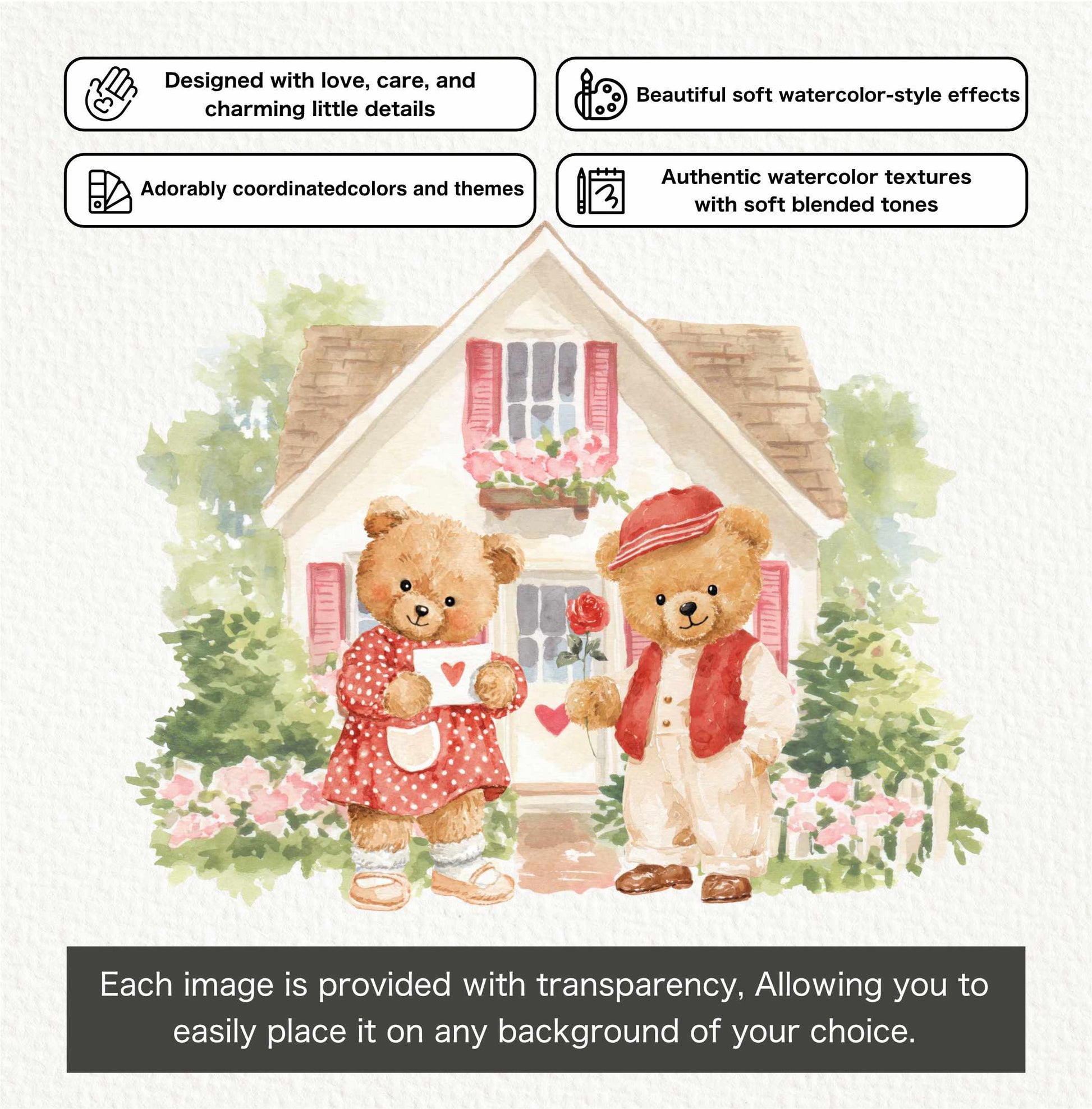 🧸 BEARY RED LOVE VALENTINE – WATERCOLOR TEDDY CLIPART (70 PNGs)