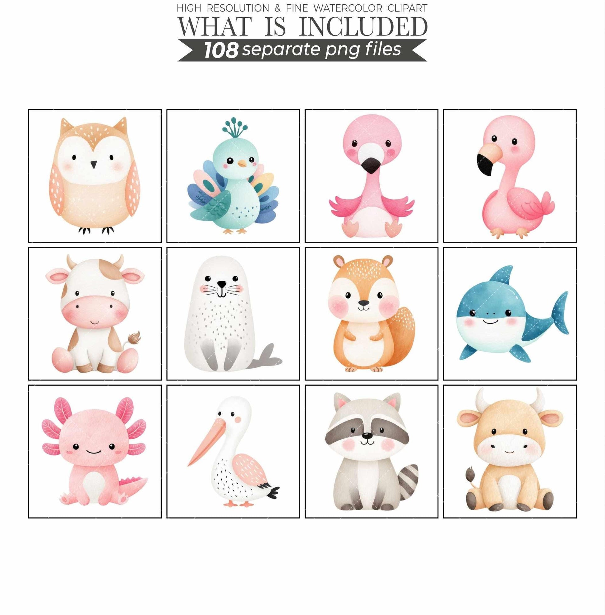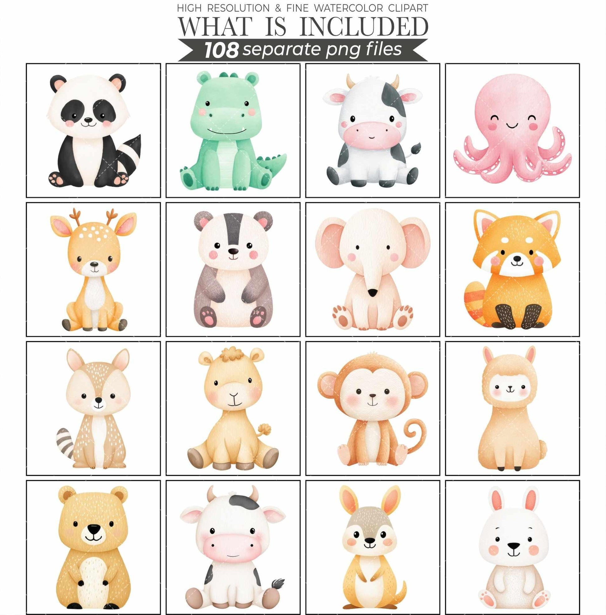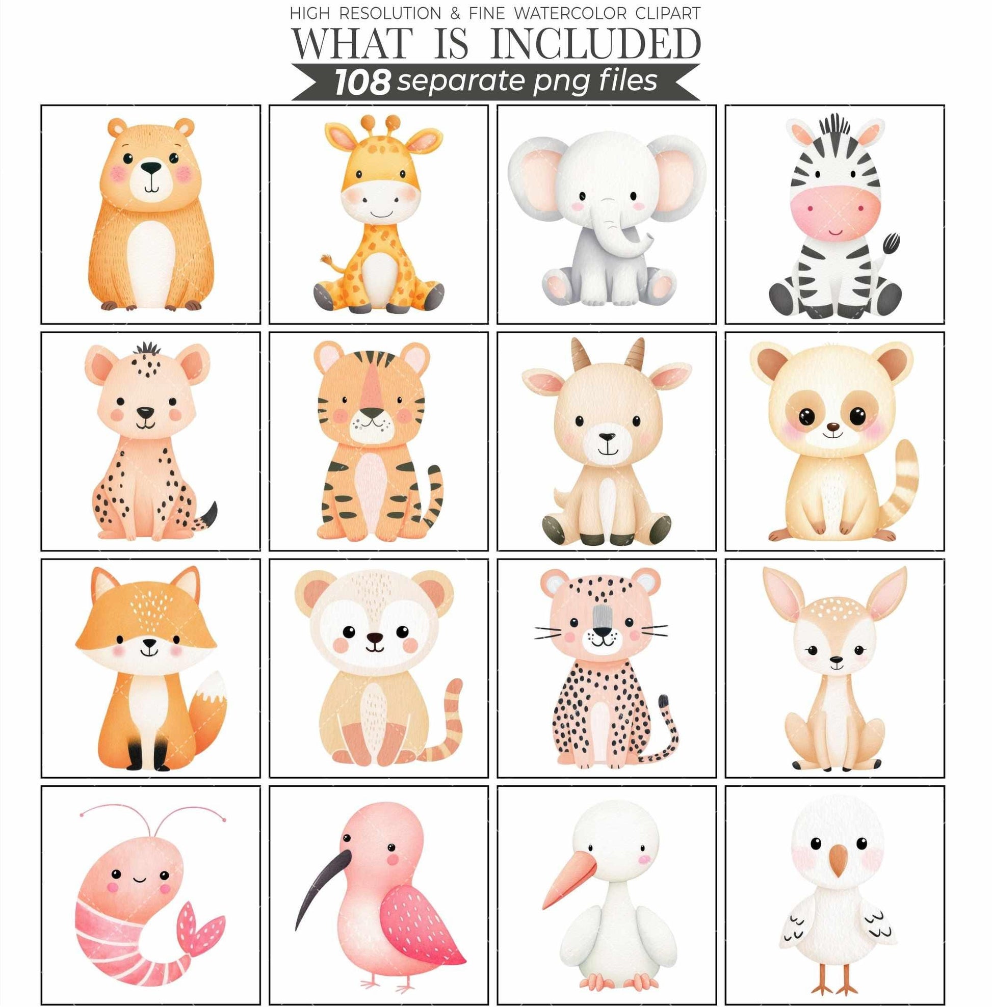 Watercolor Baby Animals Clipart Bundle Nursery Art PNG (Digital Download)