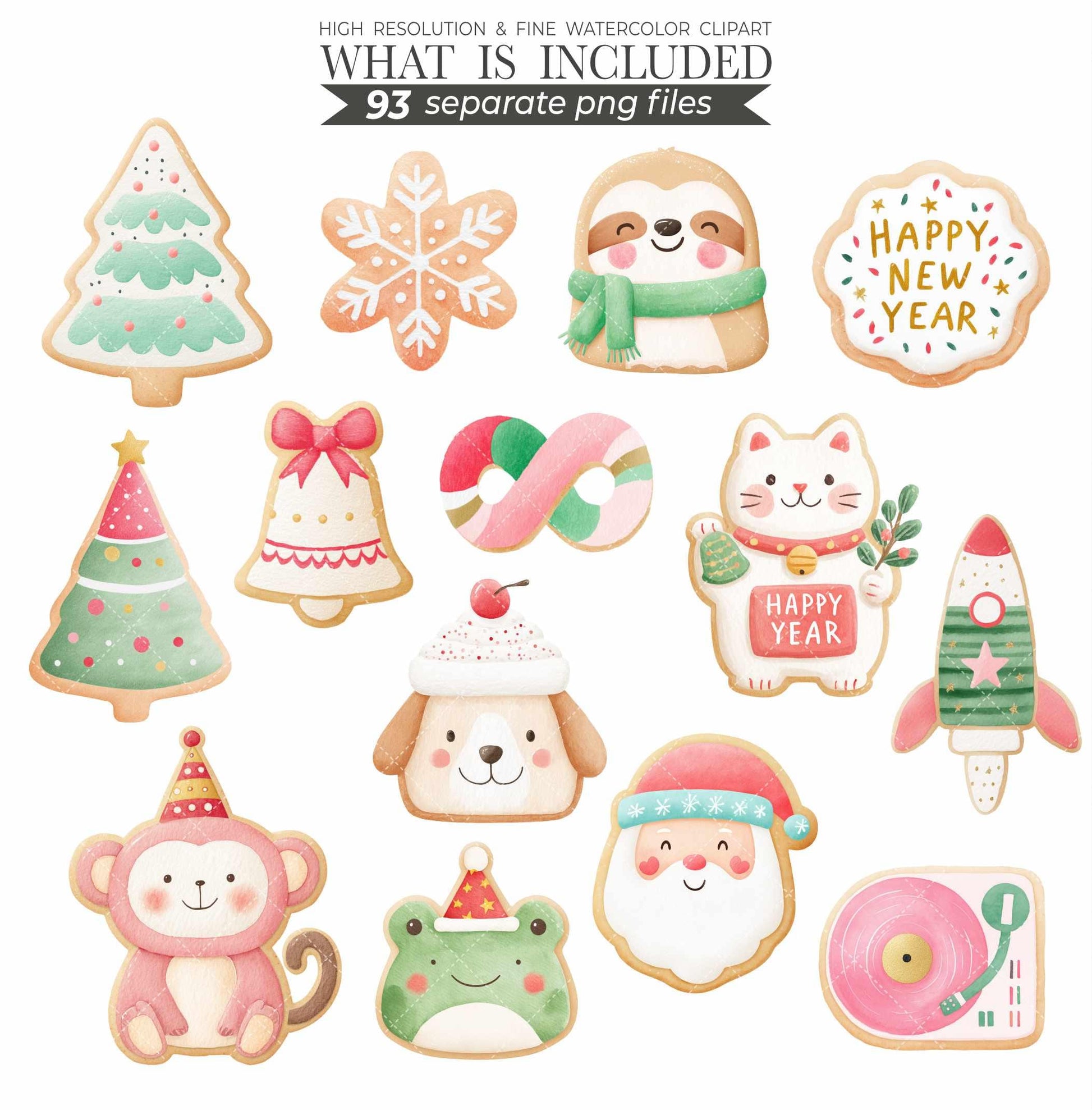 Watercolor Christmas Cookies Clipart: 186 PNGs for Crafts & Scrapbooking (Digital Download)