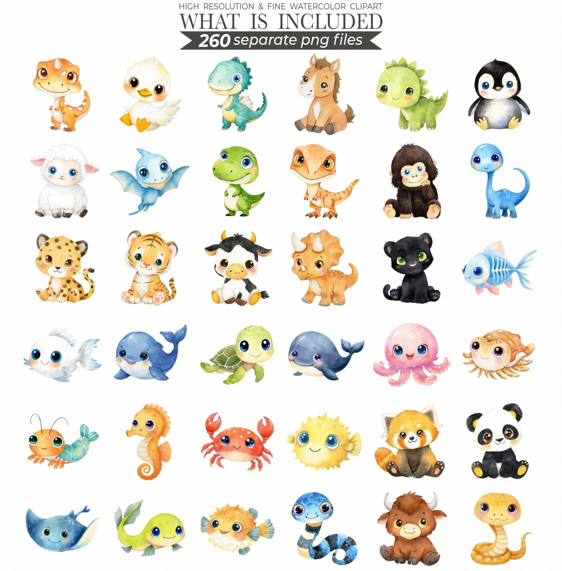 Watercolor Cute Animals Clipart 260 Cute Animal PNG Watercolor Animals Cute Animal Bundle Baby Animals Printable Animals Clipart Bundle
