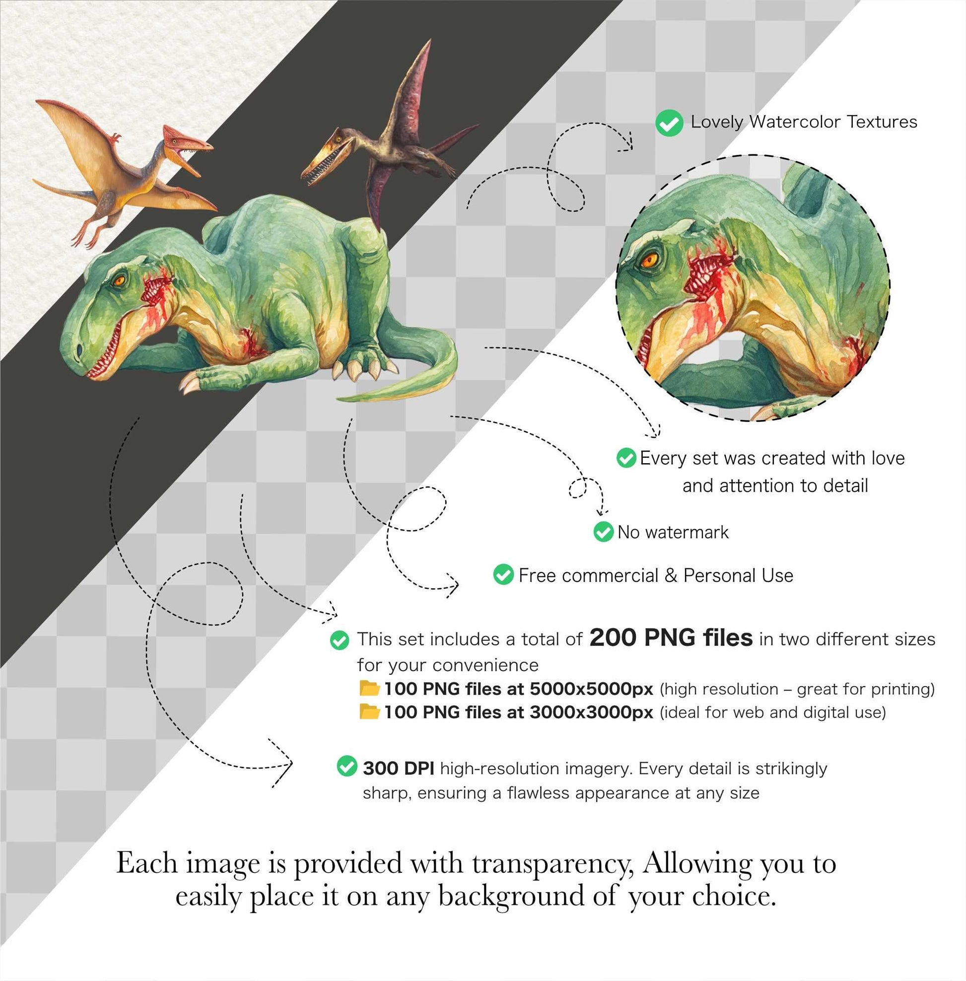 Watercolor Dinosaur Clipart Bundle: Prehistoric Art, 200 PNGs (Digital Download)