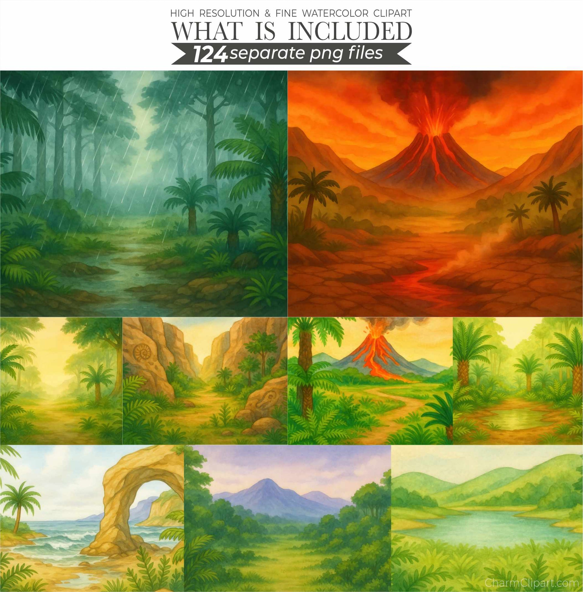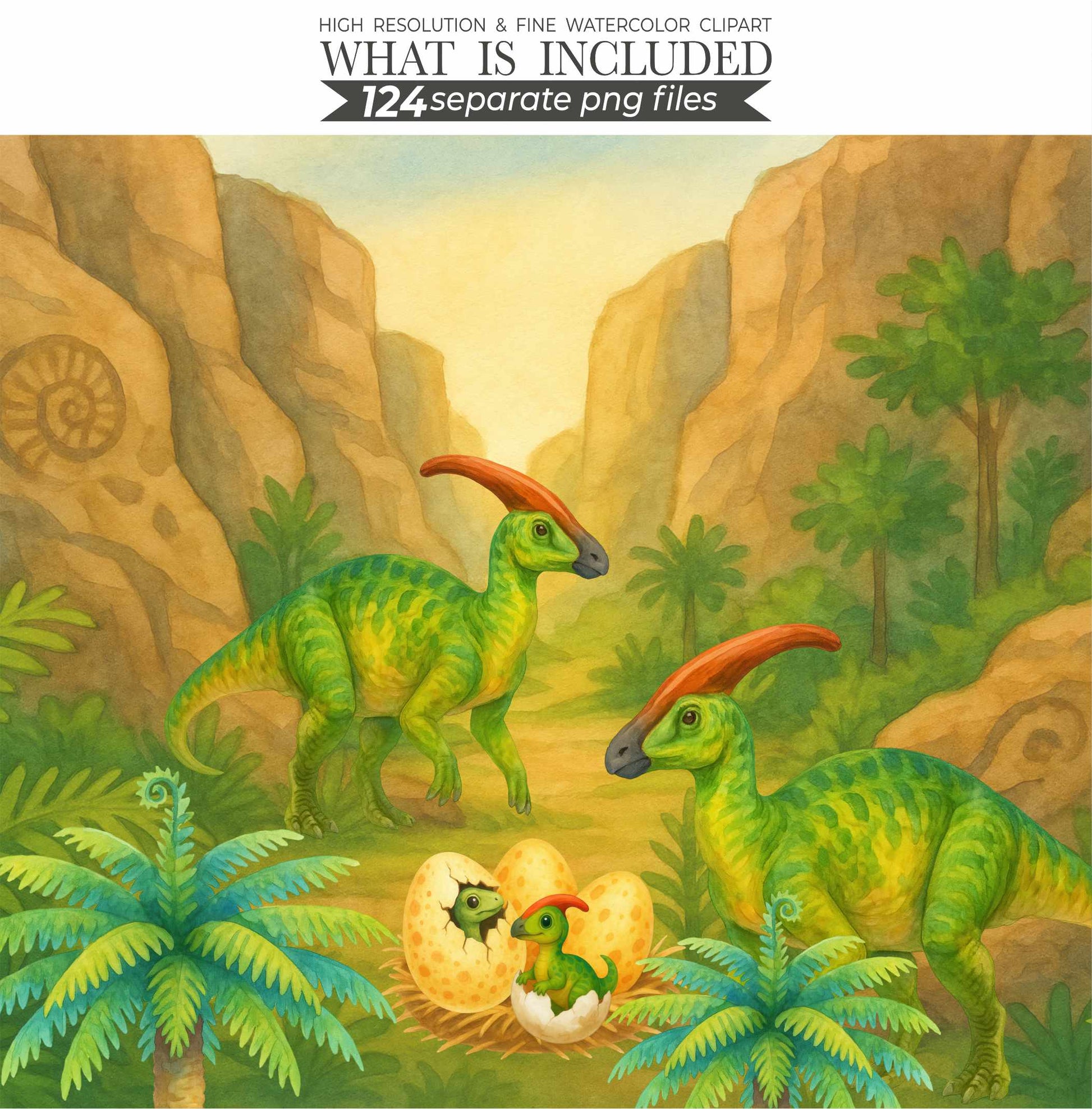 124 Watercolor Dinosaurs Clipart includes High Resolution