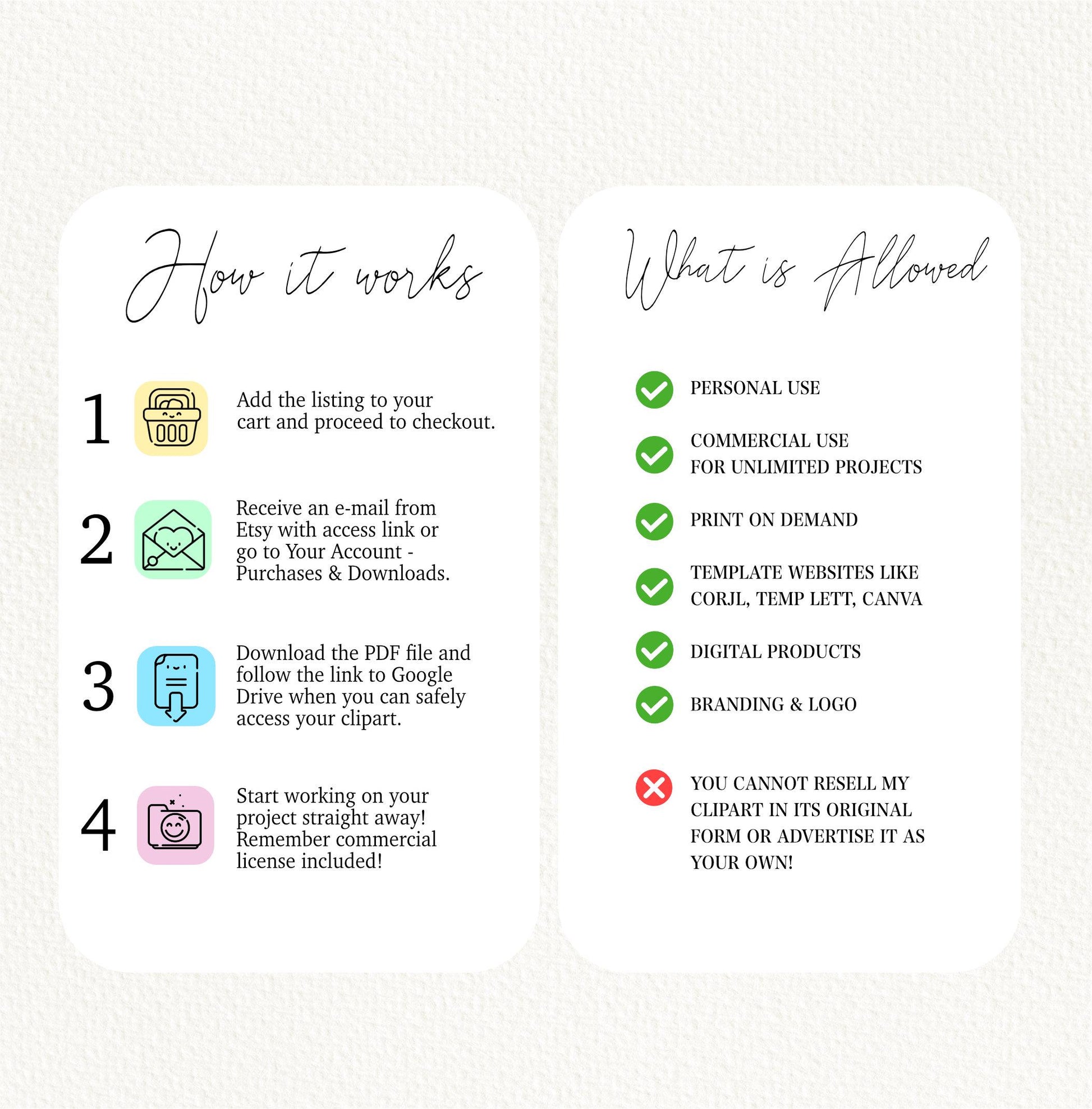 Feel free to use my illustrations for a variety of projects! They're perfect for branding, logos, wedding invitations, wall art, printed materials, greeting cards, covers, gifts, social media content, wrapping paper, wallpapers, textiles, scrapbooking, stickers, websites, blogs, online invitations, and so much more. Enjoy letting your creativity flow in numerous directions! If you have any questions regarding usage, don't hesitate to reach out.