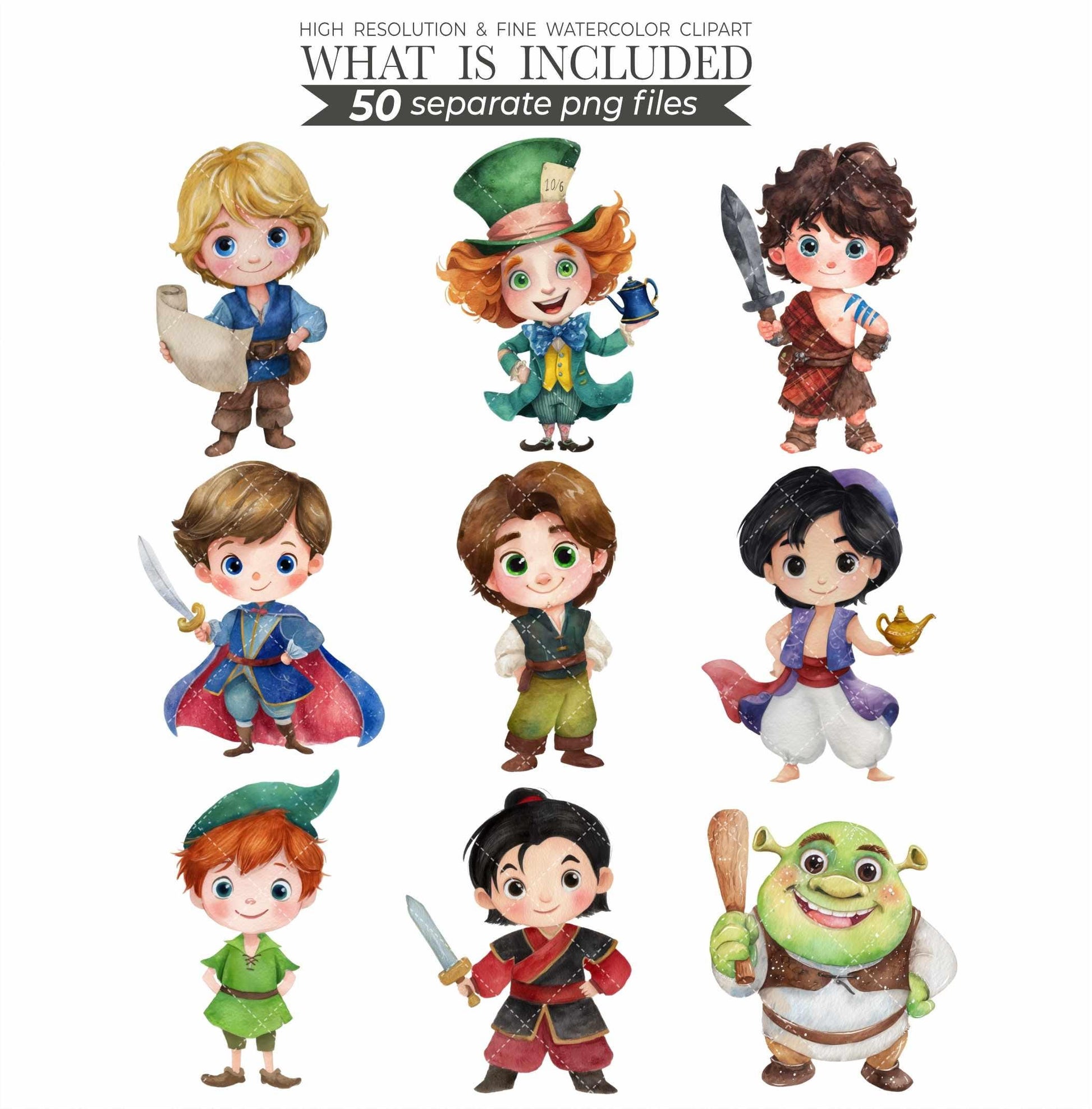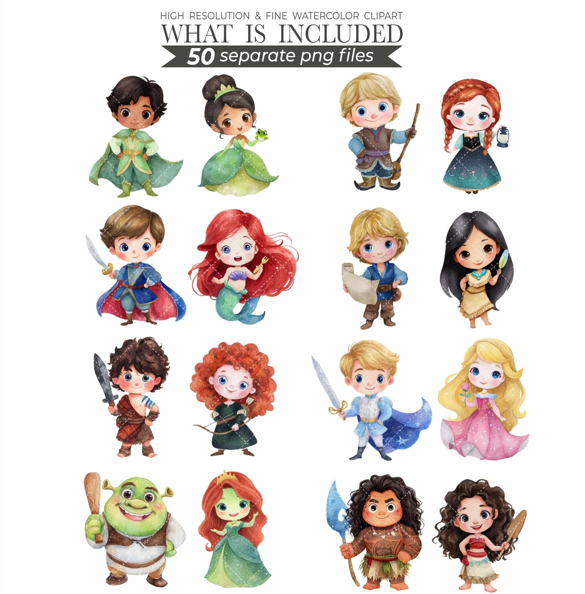 Bring fairy tales to life with this charming bundle! This set includes 50 high-quality PNGs featuring adorable princes and princesses with their beloved partners — all painted in bright, colorful watercolor tones with a sweet and whimsical storybook charm. Perfect for adding magic and romance to your creative projects.