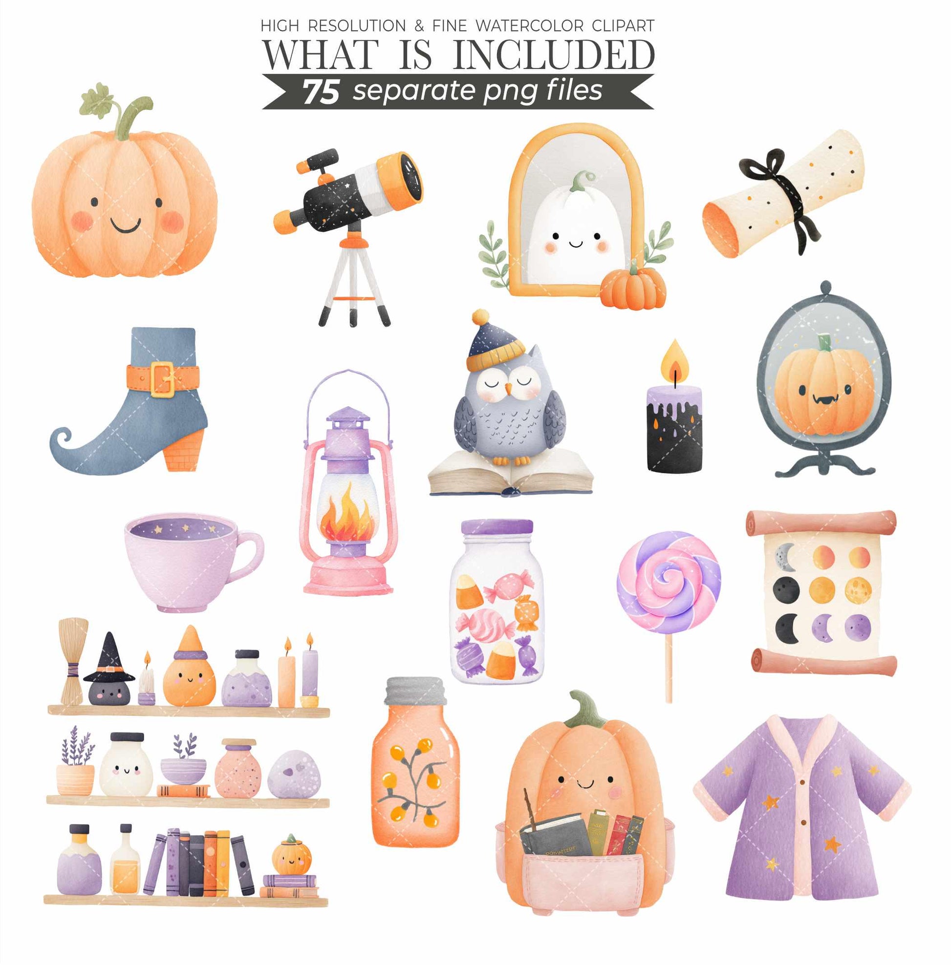 Add a sprinkle of pastel magic and Halloween cheer to your designs with this one-of-a-kind clipart bundle! 🎃🧡💜