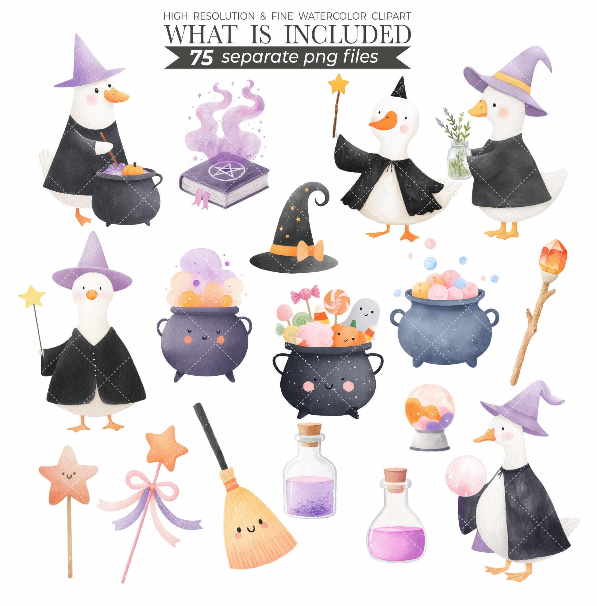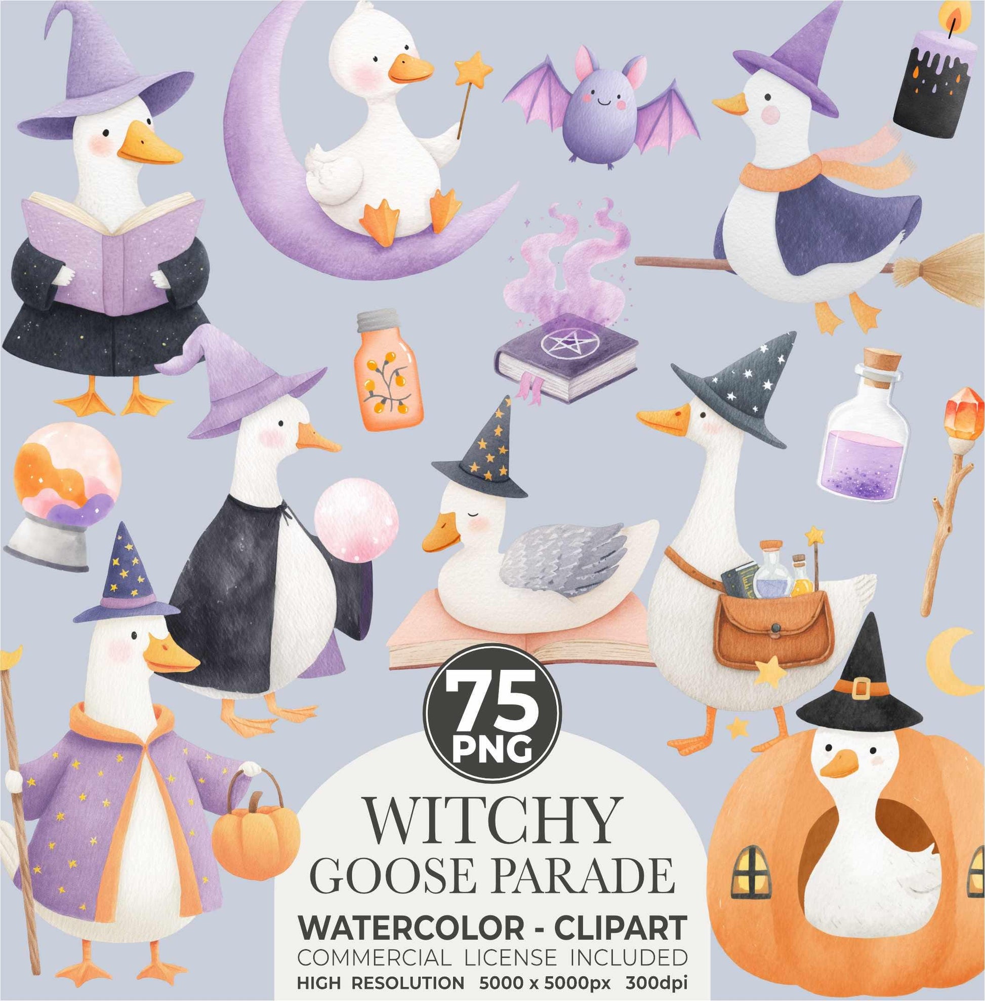 🎃 Witchy Goose Parade Halloween Clipart Set 🦢✨